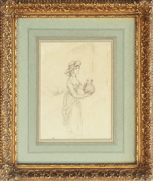 Woman Holding a Jug, Continental School, 19th Century 13.25W x 16H - Cleared Art