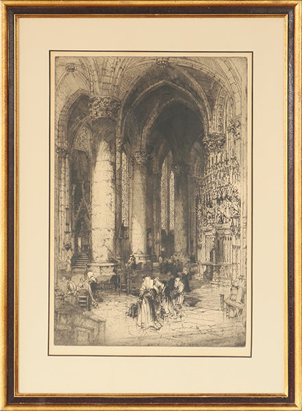 St Etienne du Mont, Paris Etching 19th Century 25.5W x 34.5H - Cleared Art
