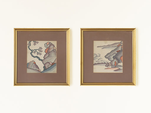 Pair of Antique Silk Japanese Textiles 16.75W x 17.75H - Cleared Art