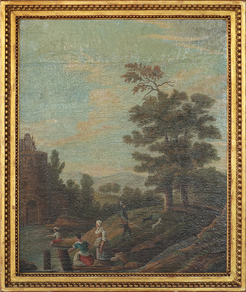 European School Figures in Landscape, 18th Century, 26.5W x 31.5H - Cleared Art