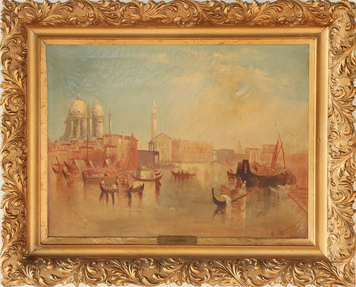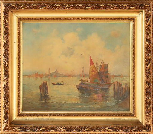 Antique Italian Impressionist Venice Harbor View 26W x 21H - Cleared Art