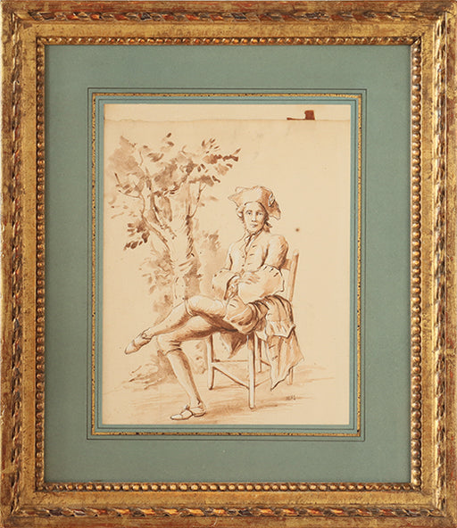 Antique European Drawing of Figure on Chair 16.5W x 19H - Cleared Art