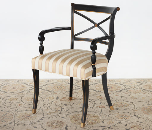 Chippendale Style Arm Chair w/ Green Pinstripes