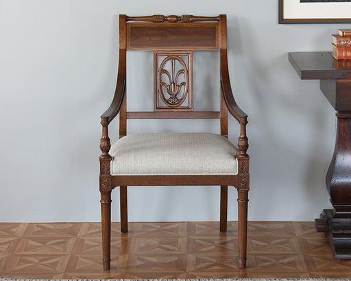 Neutral Tweed Arm Chair w/ Dark Eucalyptus Frame