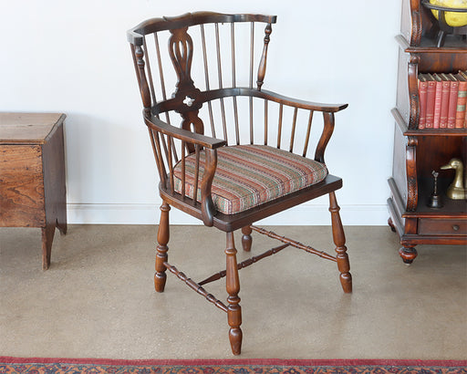 Dark Wood Barrel Back Armchair w/ Plush Cream Seat