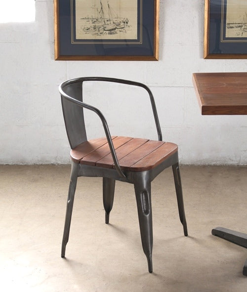 Slatback Metal Armchair with Green Vinyl Seat & Back