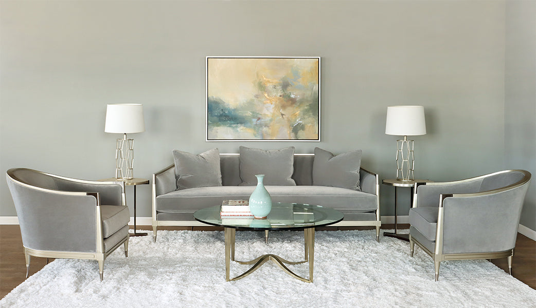 Grey Curved Back Club Chair w/ Soft Silver Frame