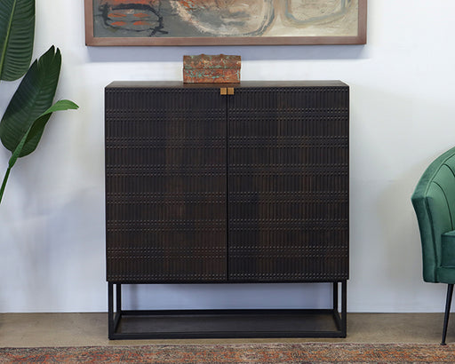 Carved Mango Wood Bar Cabinet in Vintage Brown