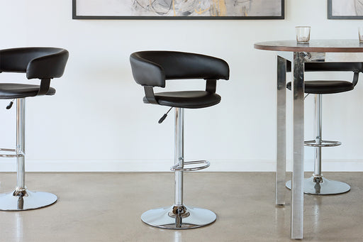 Black Leather & Chrome Adjustable Barstool