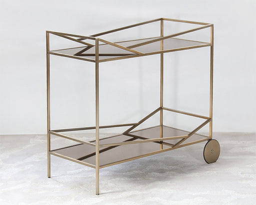Angled Brass Bar Cart With Bronze Mirrored Shelves