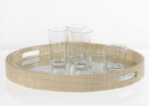 Woven Grass Tray W/Marigold Engraved Mirrored Base