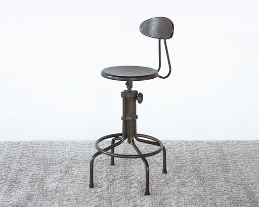 Sapele Hardwood And Steel Adjustable Drafting Stool with Back