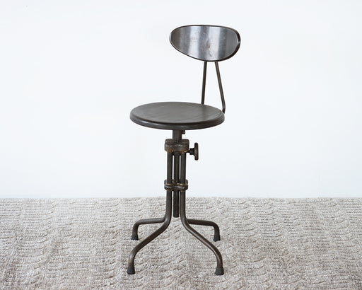 Sapele Hardwood And Steel Adjustable Drafting Stool with Back