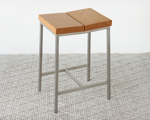 Sapele Hardwood And Steel Adjustable Bar Stool with Back