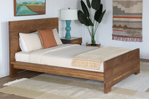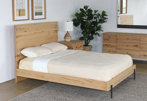 Light Oak Queen Plank Bed With Gunmetal Front Legs