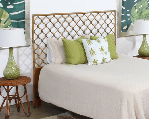 White Twin Rattan Headboard W/Leather Wrapped Join