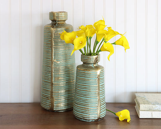 Set Of 2 Cast Gold and Green Vases- Cleared