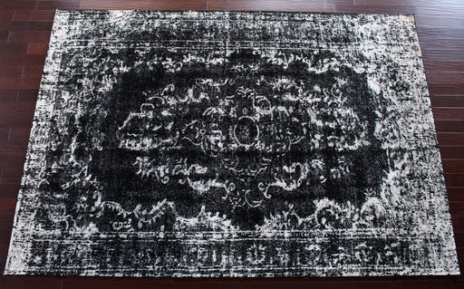7'10" x 11' Azeri Rug in Black and Ecru
