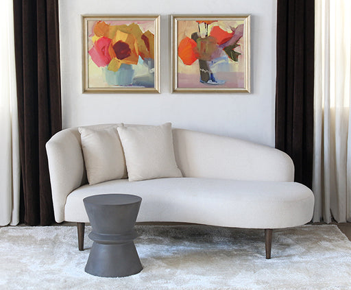 Curved Back Ivory Boucle Chaise W/Tapered Legs