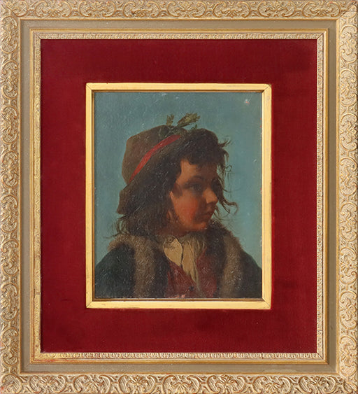 Antique Continental School Young Boy Portrait 17W x 19H - Cleared