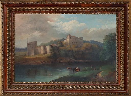 Antique European Fall River Landscape Scene 29.5W x 20.5H - Cleared Art