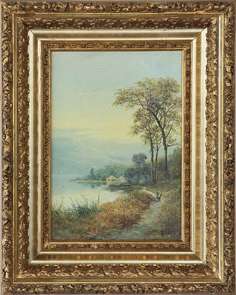 Antique English Landscape Oil on Canvas C 1880s 17W x 21H - Cleared Art