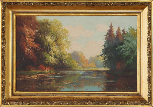 Antique American Impressionist Duck Pond 22W x 18H - Cleared Art