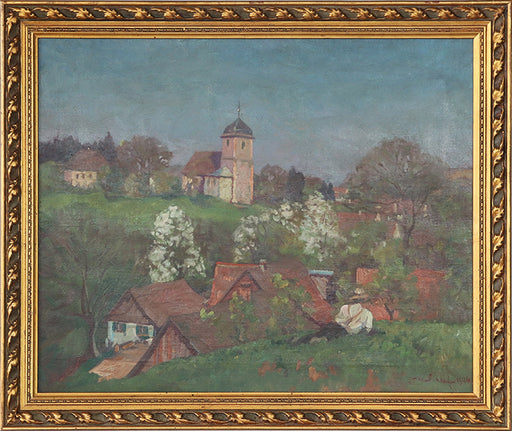 Antique French Impressionist Village Scene C. 1920s 27W x 22H - Cleared Art
