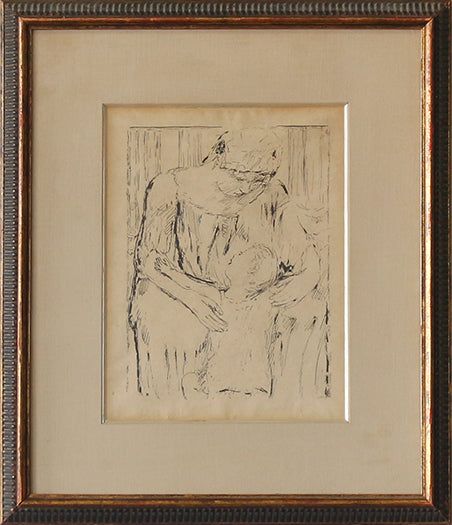 Framed Mother And Child Etching, 19th -Early 20th Century 18W x 21H