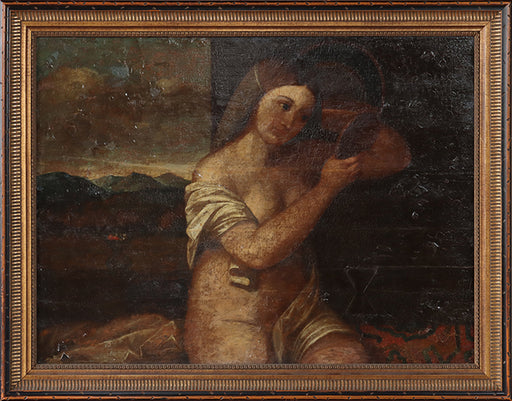 Old Master Oil Painting of Woman and Mirror 37.5W x 29.5H