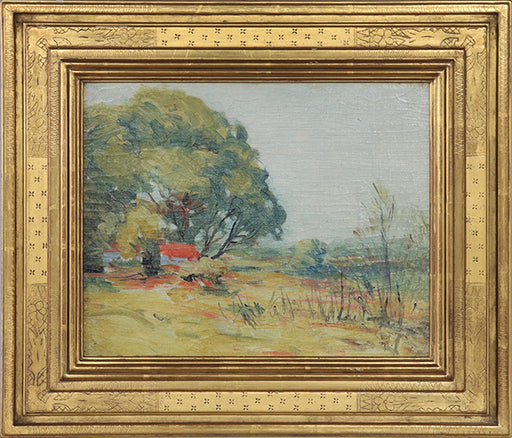 Country Cottage Landscape, Oil on Board, Early 20th Century 20W x 17H