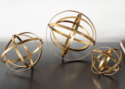 Set of 3 Antiqued Gold Banded Spheres - Cleared