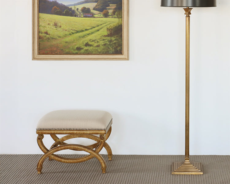 Antiqued Almond Finish Bench with Nailheads - Cleared