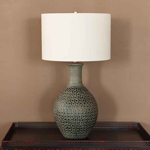 Carved Ocean Blue Ceramic Table Lamp- Cleared