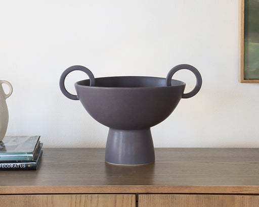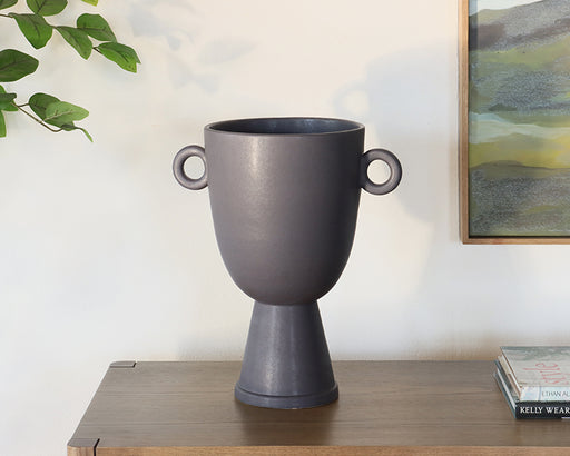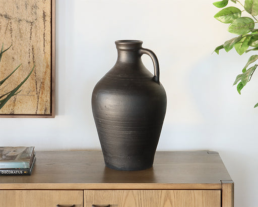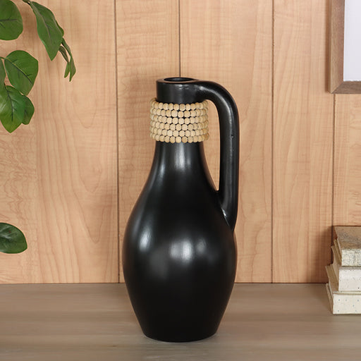 Black Concrete Vessel with Handle & Beaded Neck - Cleared