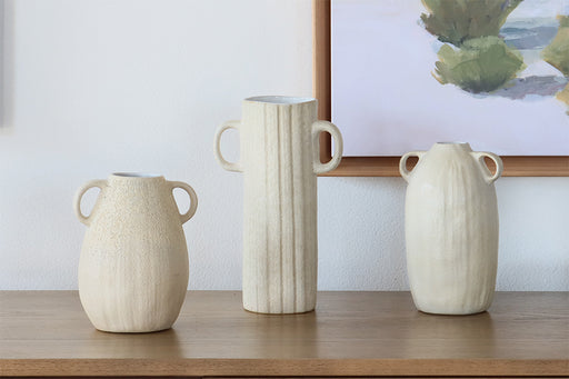 Set of 3 Eggshell White Textured Vases - Cleared