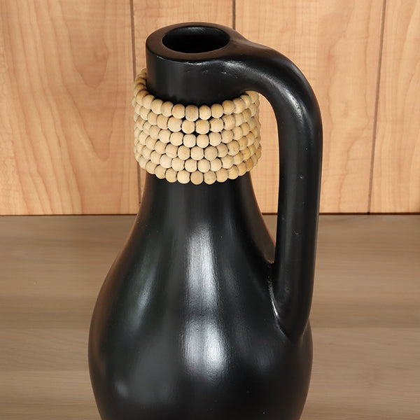 Black Concrete Vessel with Handle & Beaded Neck - Cleared