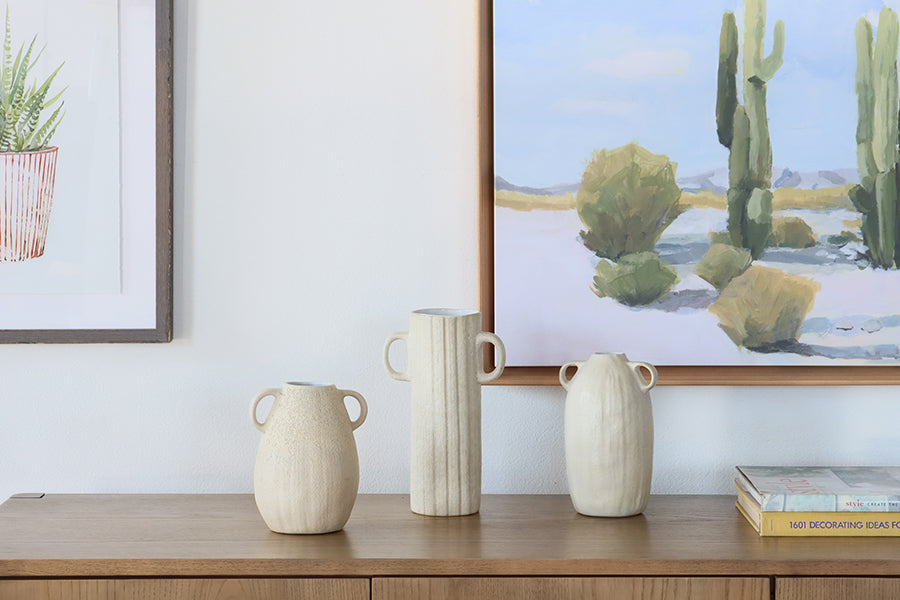 Set of 3 Eggshell White Textured Vases - Cleared
