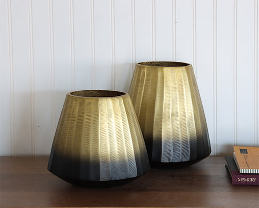 Set Of 2 Cast Gold and Black Ombre Vases-Cleared