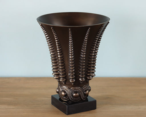 Black Concrete Vessel with Handle & Beaded Neck - Cleared