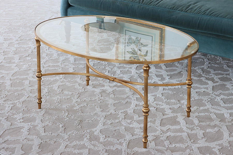 Gold Leaf Coffee Table W/ Glass Top and Stretcher - Cleared