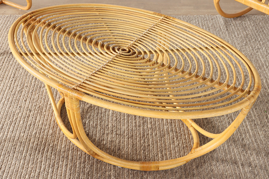 Oval Rattan Coffee Table with Concentric Oval Top