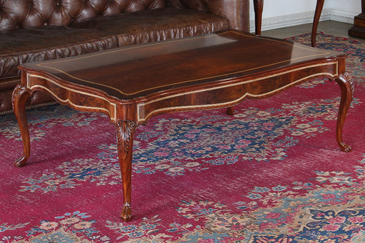 Gold Leaf Coffee Table W/ Glass Top and Stretcher - Cleared