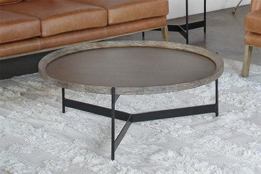Round Seared Oak Coffee Table with Black Iron Base
