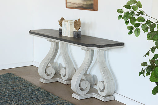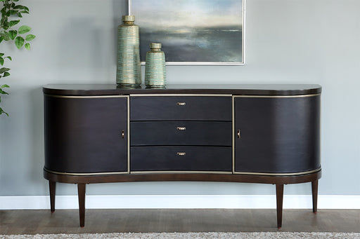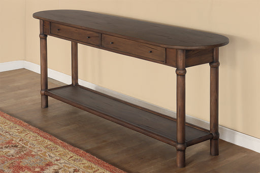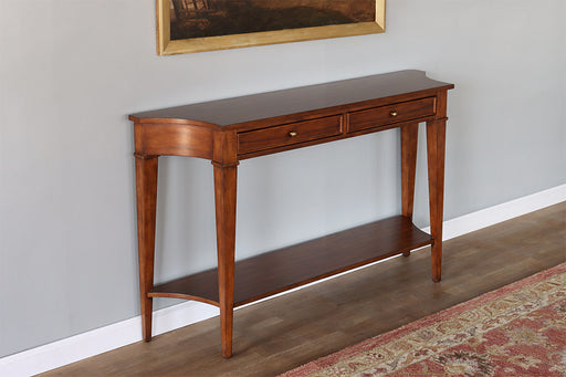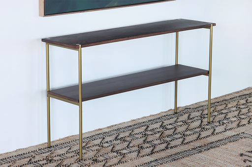 Dark Eucalyptus Wood Curved Console w/ Bronze Trim