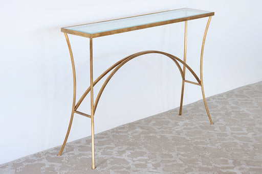 Gold Leaf Console with Arched Base and Glass Top - Cleared
