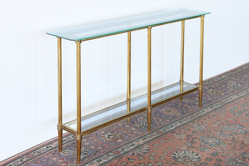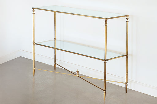 Gold Leaf Console with Glass top and Gallery Shelf - Cleared