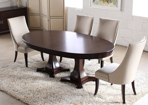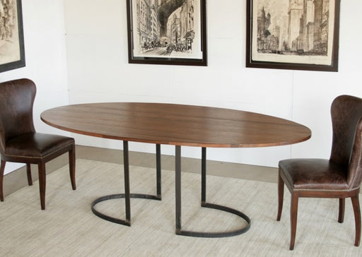 Oval Dining Table In Light Walnut With Curved Metal Base