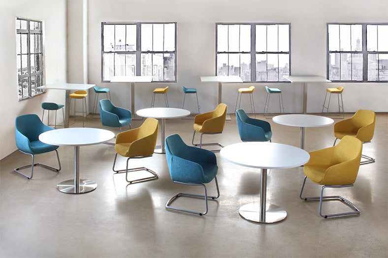 Round White Cafe Table W/Brushed Aluminum Base