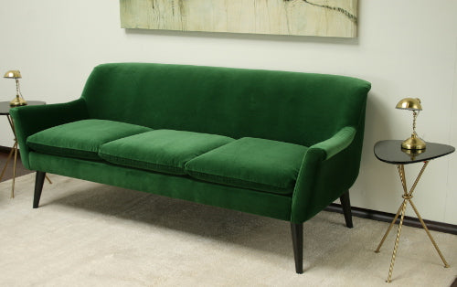 Blush Taupe Curved Arm Sofa With Toss Pillow Back